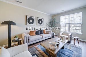 This spacious and sun-filled apartment blends modern updates with classic charm. Featuring six rooms, two bedrooms, and 1.5 newly renovated baths, the home offers gleaming wood floors, high ceilings, and abundant natural light throughout. The main level includes a beautifully updated kitchen with stainless steel appliances and gas stove, dining room, generous living room, and half bath. Upstairs you'll find two comfortable bedrooms with ample closets, a newly remodeled full bath, and a versatile office or den. Additional highlights include a clean basement with in-unit washer & dryer, new heating and central air conditioning, and two off-street parking spaces. Ideally located just steps from the shops and restaurants of West Newton Square, this home offers easy access to the Commuter Rail to South Station, the 553 / 554 bus, the Mass Pike, and Route 128 / I-95. No pets. No smoking. Excellent credit and references required. Tenants pay gas, electric, and cable / internet.
